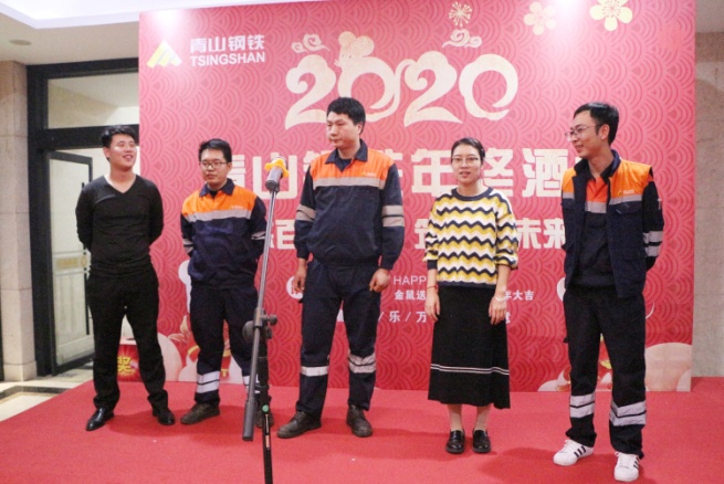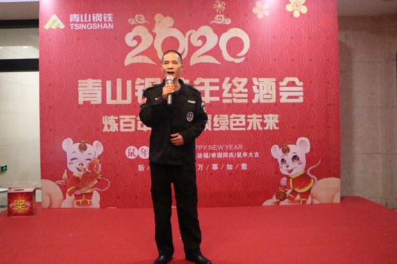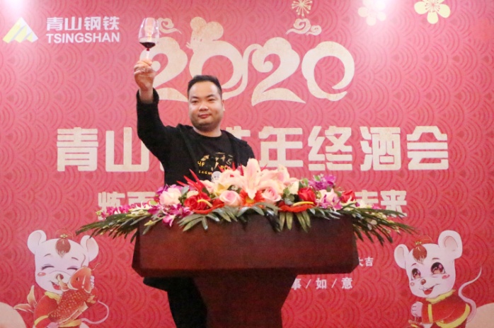 酒会伊始,沈亮致辞,他代表公司向关心和支持公司发展的各位嘉宾表示亲切的问候,向一年来在各工作岗位上认真谋划、亲力亲为的同事表示衷心的感谢,向在公司任劳任怨、为青山发展奉献十五余载的老员工们致以崇高的敬意。他指出:在青拓集团的正确领导下,公司通过引进先进设备、加强基础建设、合理整合资源、调整产品结构、提升产品附加值、加大产品开发力度等一系列有效措施,积极应对市场形势,与时俱进更新发展观念,进一步加快转型升级步伐,圆满地完成了2019年的工作任务,保持了良好的发展态势。成绩属于过去,未来催人奋进,伴随着2019年的完美收官,新时代的壮丽画卷正徐徐展开。展望新的一年,市场竞争愈加激烈,公司将面临更大的挑战,但是风险与机遇并存,希望公司全体员工继续发扬敢为人先、迎难而上的精神,秉承“奋起、争先、严谨、实干”的精神,再接再厉,继续开拓,为实现新的目标而奋斗,为青山的发展壮大做出更大的贡献!