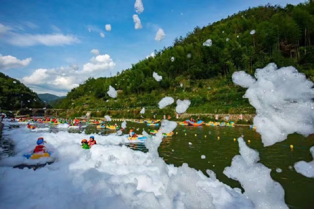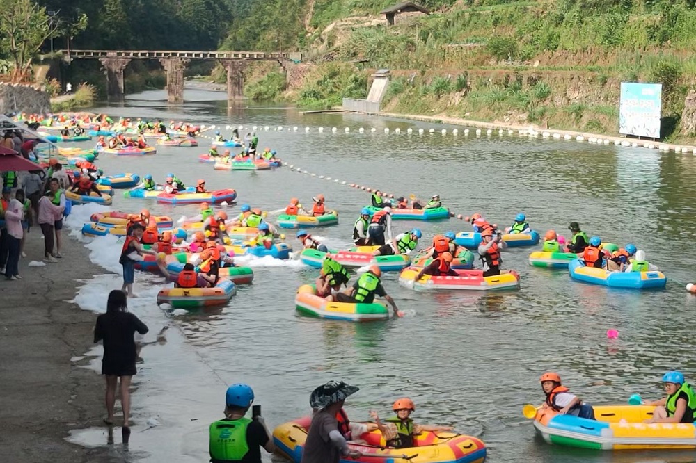 青山绿水与惊而不险的漂流,动与静的结合相得益彰。第二站大家直奔“消夏”主题——浙龙峡漂流景区,体验高空玻璃漂流、超长峡谷河道漂流。山风拂面、绿树成荫,在享受刺激漂流的同时感受大自然的宁静与和谐,这种亲近自然的体验让大家的心情彻底得到了放松。